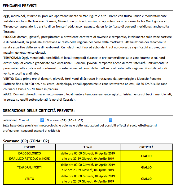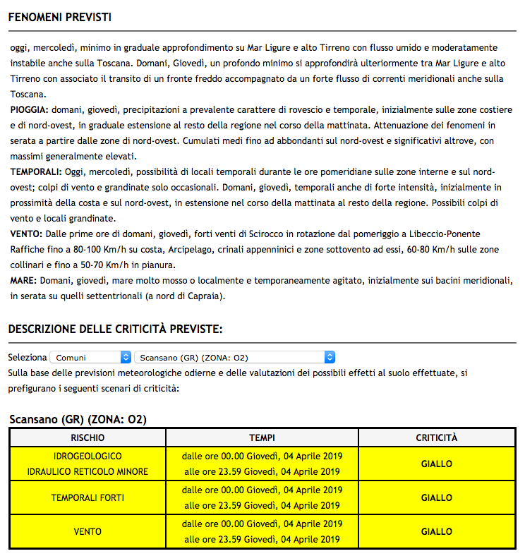 4.4.2019: Allerta Meteo Gialla per Temporali e Vento