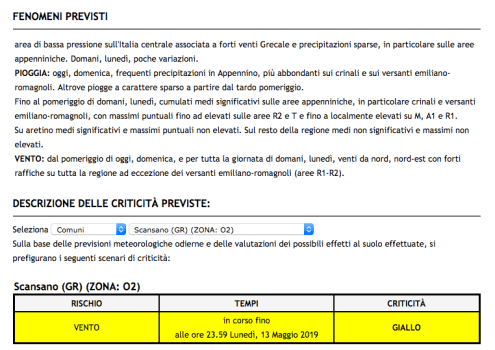 13.5.2019: Allerta Meteo Gialla per Vento