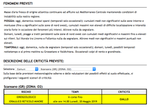 20.5.2019: Allerta Meteo Gialla per rischio idrogeologico idraulico al reticolo minore (fossi e torrenti) dalle ore 18.00 Domenica, 19 Maggio alle ore 14.00 Lunedì, 20 Maggio 2019 Condividi: Fai clic per condividere su X (Si apre in una nuova finestra) X Altro Fai clic per condividere su Facebook (Si apre in una nuova finestra) Facebook Mi piace Caricamento...