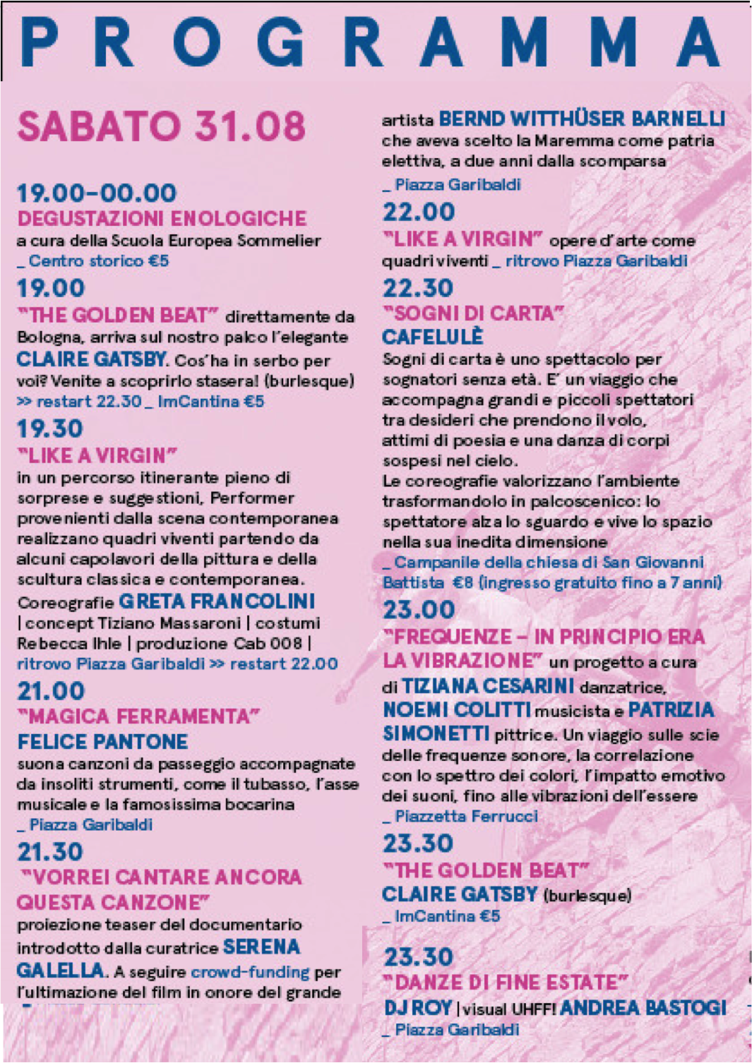 29.8-1.9.2018: Programma completo del Teatro nel Bicchiere 2019