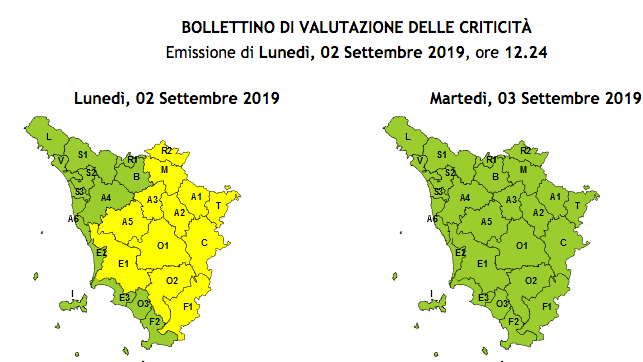 2.9.2019: Allerta meteo gialla per rischio temporali forti