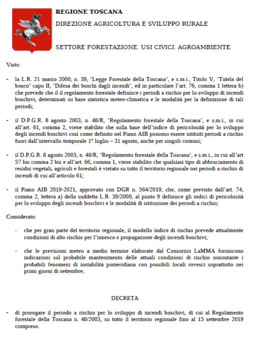 15.9.2019: Termine della proroga del divieto di abbruciamenti Il periodo a rischio per lo sviluppo di incendi boschivi su tutto il territorio regionale è prorogato fino al 15 settembre 2019 compreso. Condividi: Fai clic per condividere su X (Si apre in una nuova finestra) X Altro Fai clic per condividere su Facebook (Si apre in una nuova finestra) Facebook Mi piace Caricamento...