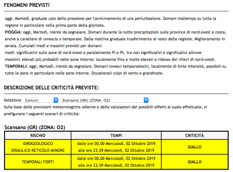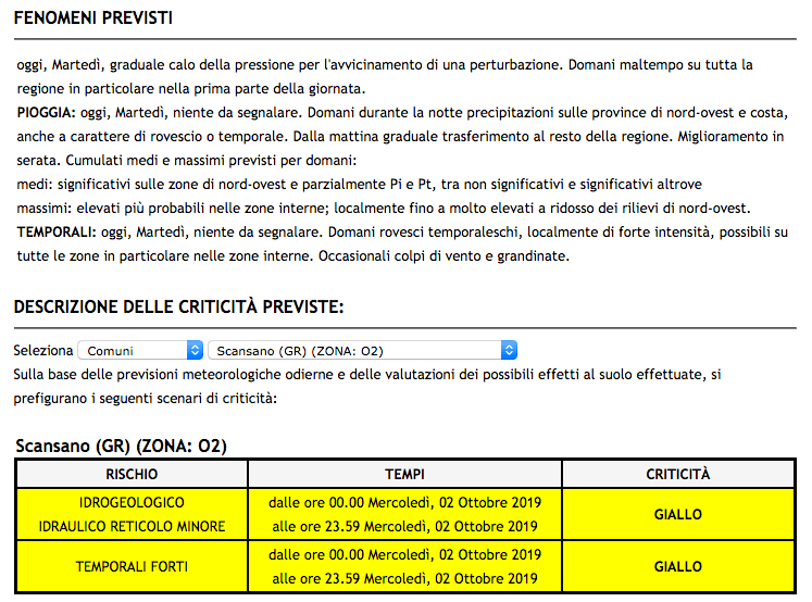 2.10.2019: Allerta Meteo Gialla per rischio temporali forti