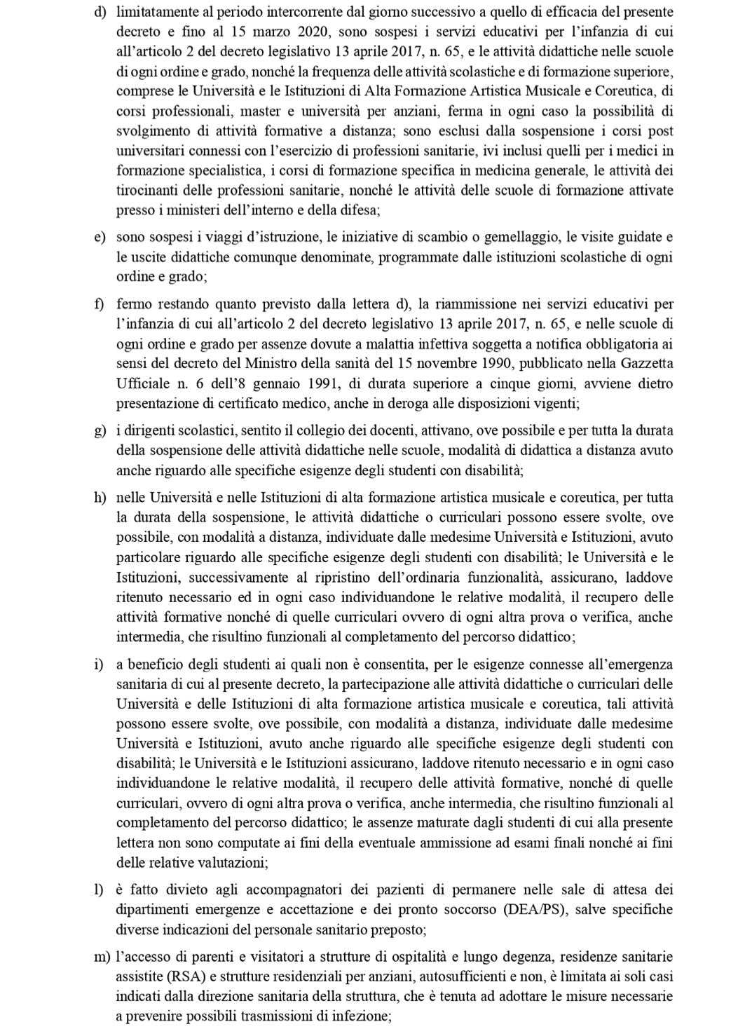 4.3.2020: Il Provvedimento del Governo, Scuole chiuse e non solo