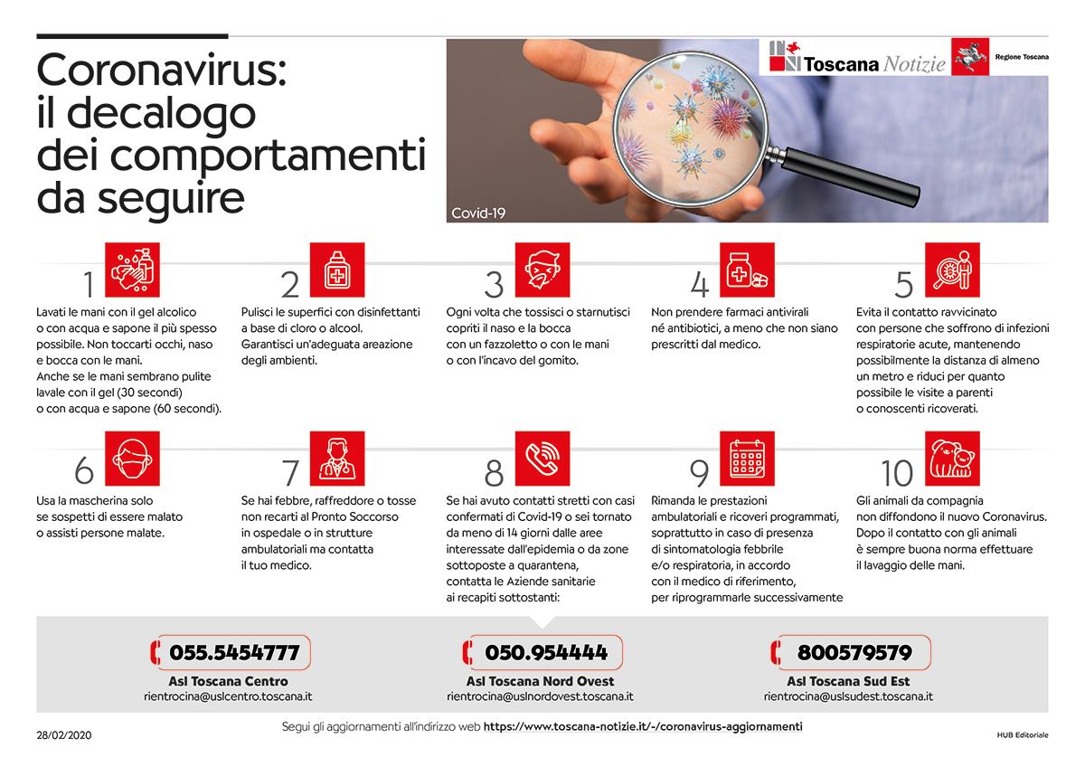 Coronavirus: Le indicazioni della Regione Toscana Condividi: Fai clic per condividere su X (Si apre in una nuova finestra) X Altro Fai clic per condividere su Facebook (Si apre in una nuova finestra) Facebook Mi piace Caricamento...