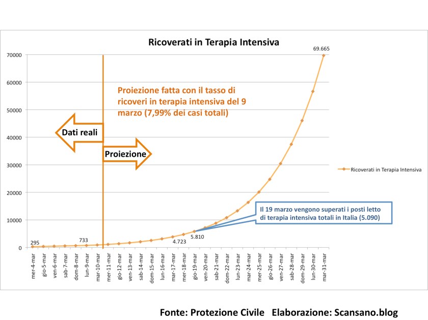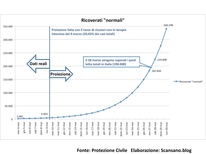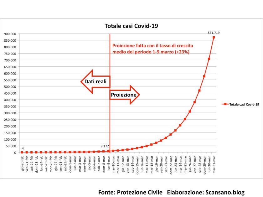 Cosa succederebbe se il contagio del Covid-19 non venisse rallentato e continuasse con i ritmi del periodo 1 – 9 marzo 2020?