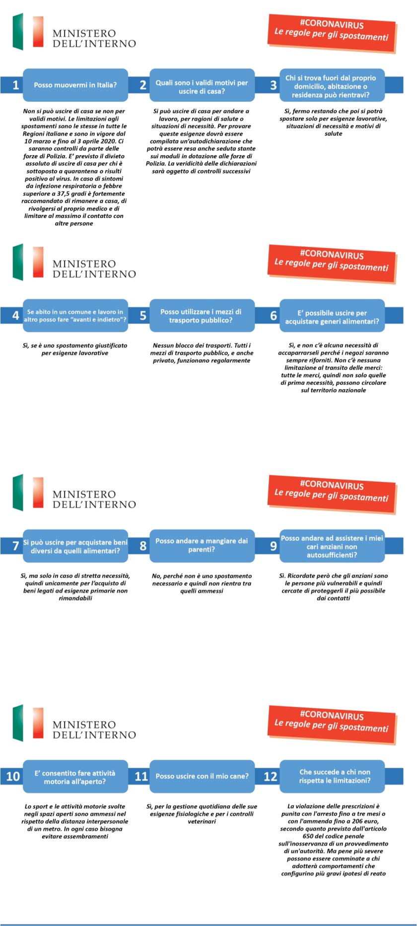 Quanto segue è tratto dal sito del Ministero dell’Interno dell’Interno e dunque trattasi di disposizioni ufficiali, anche per precisare alcune “imprecisioni” che si diffondono.