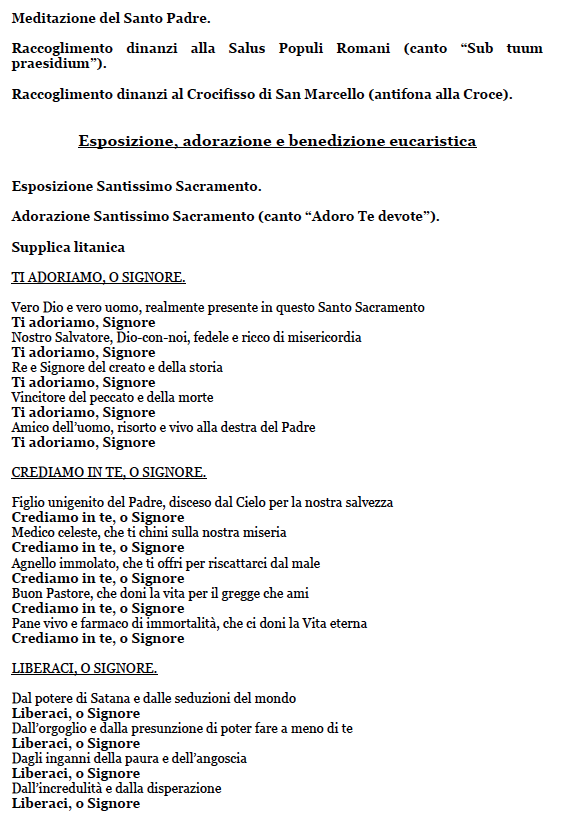 27.3.2020, ore 18: Cerimonia religiosa con Papa Francesco. Dove seguirla e il Libretto della Cerimonia