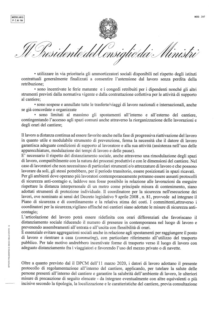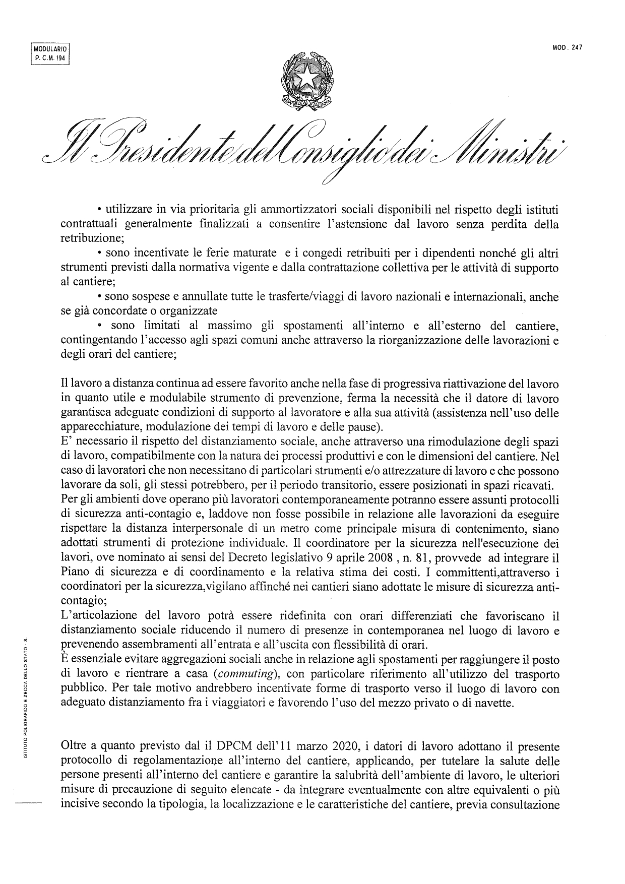 26.4.2020: Il Testo integrale con gli allegati del DPCM sulla Fase 2