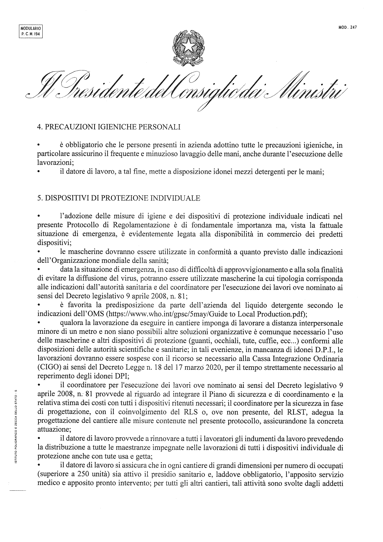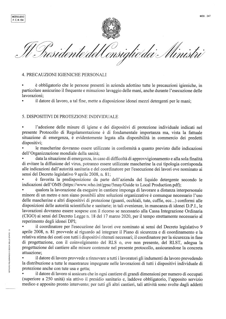 26.4.2020: Il Testo integrale con gli allegati del DPCM sulla Fase 2