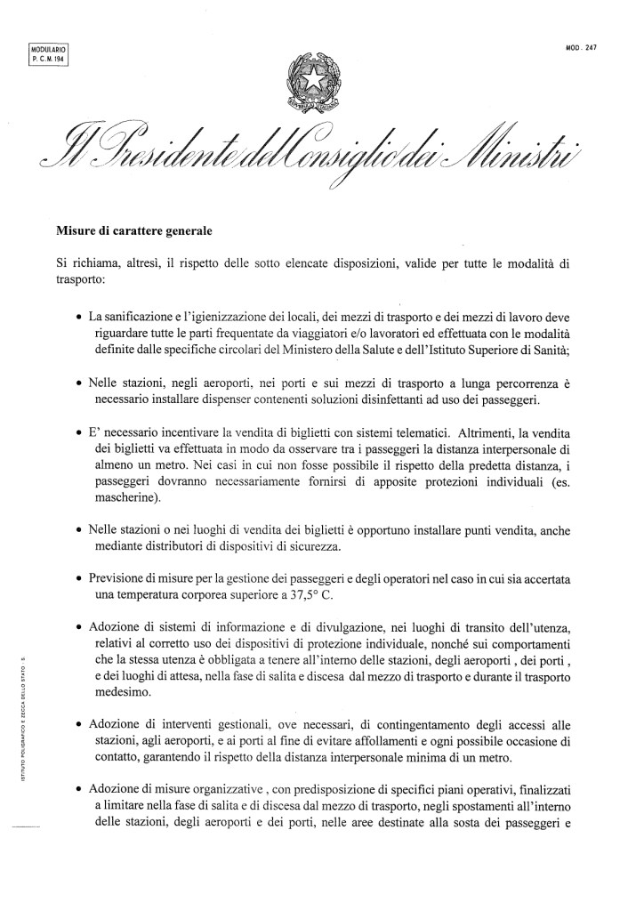 26.4.2020: Il Testo integrale con gli allegati del DPCM sulla Fase 2