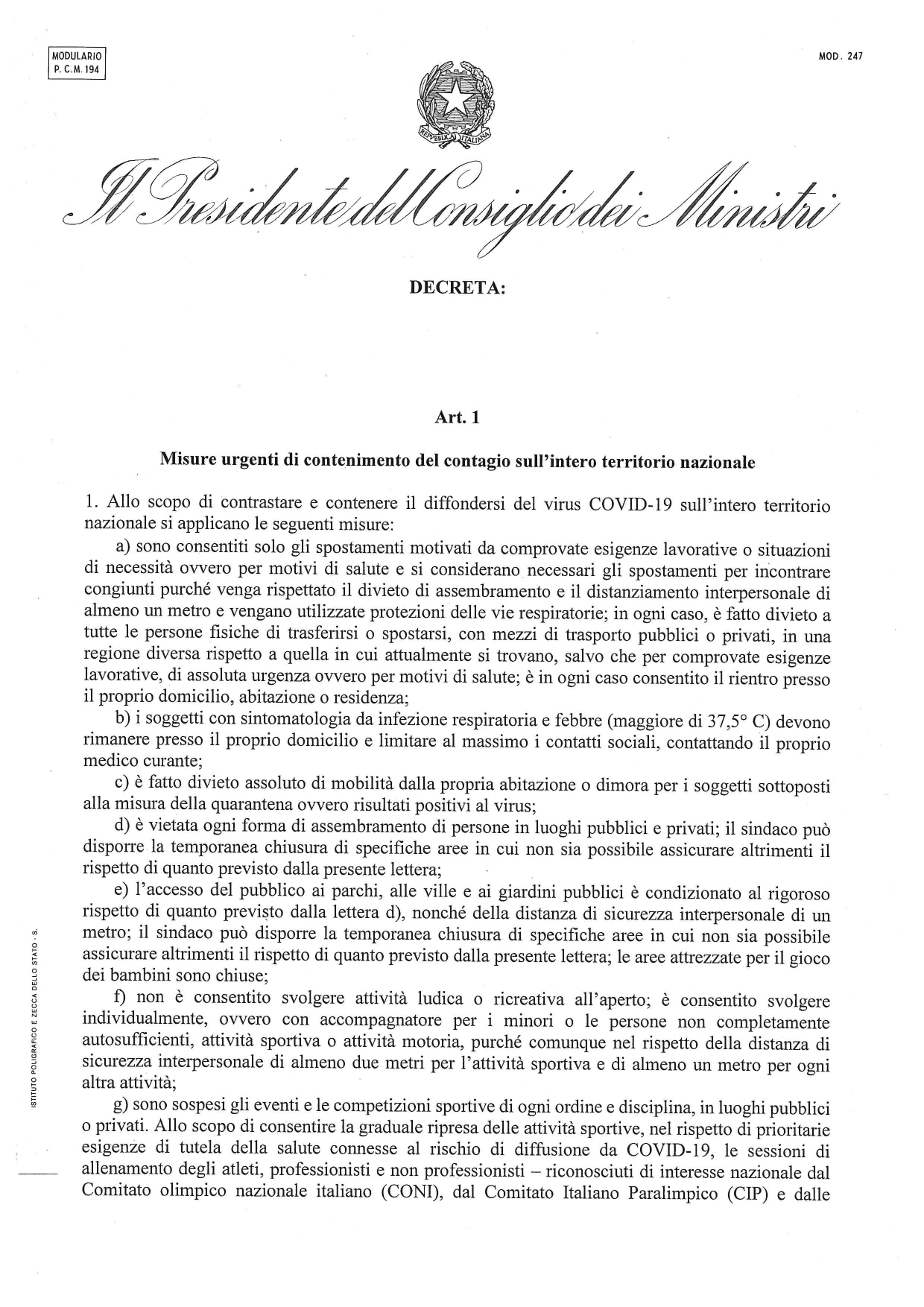 26.4.2020: Il Testo integrale con gli allegati del DPCM sulla Fase 2