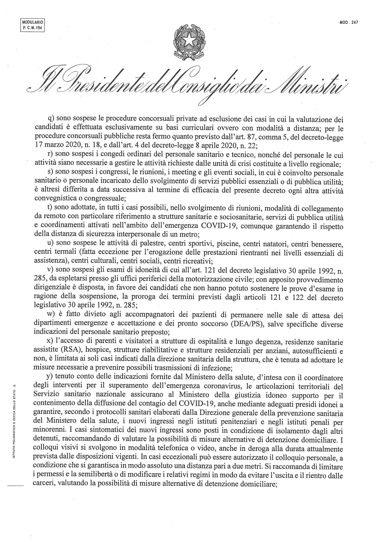 26.4.2020: Il Testo integrale con gli allegati del DPCM sulla Fase 2