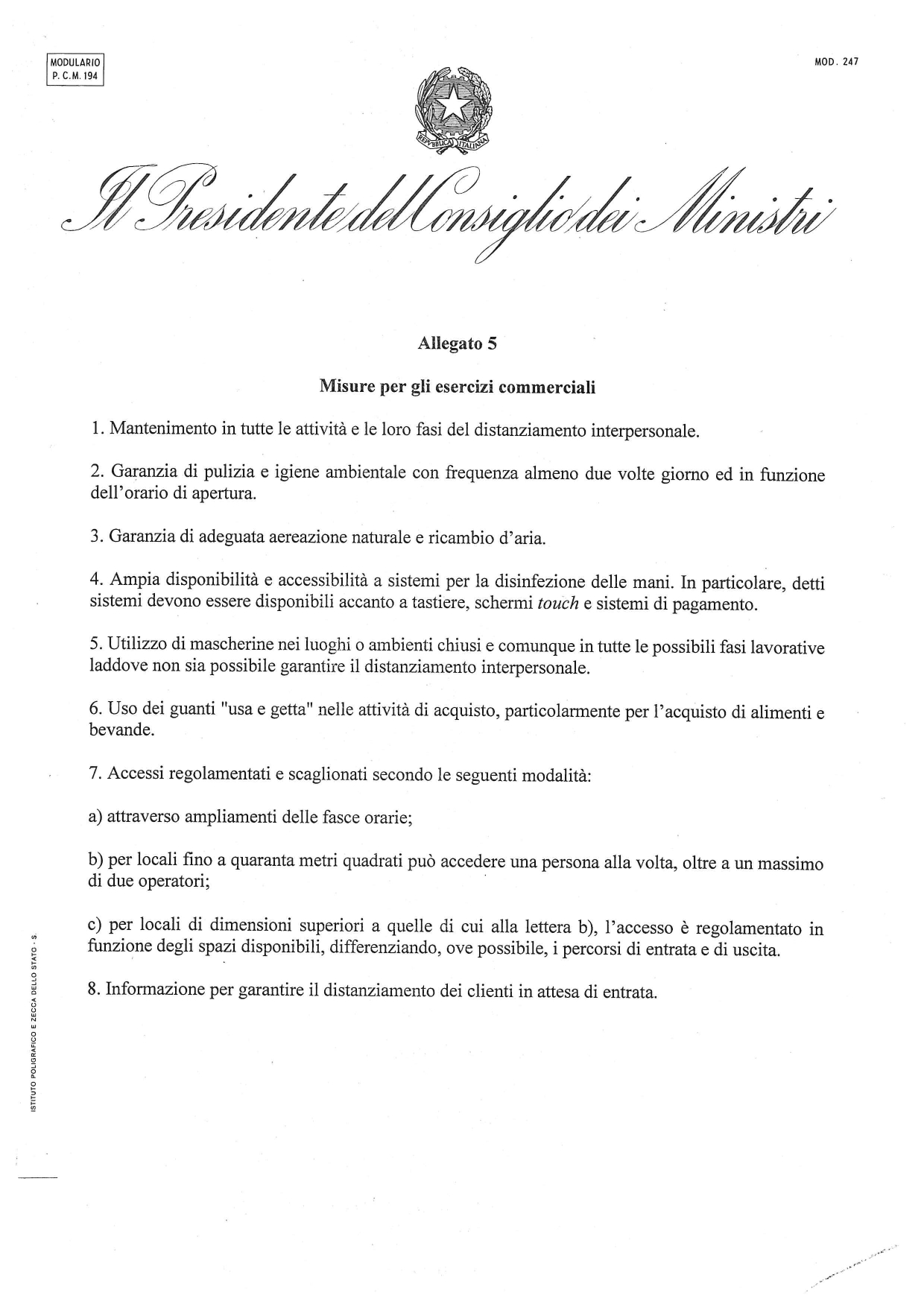 26.4.2020: Il Testo integrale con gli allegati del DPCM sulla Fase 2