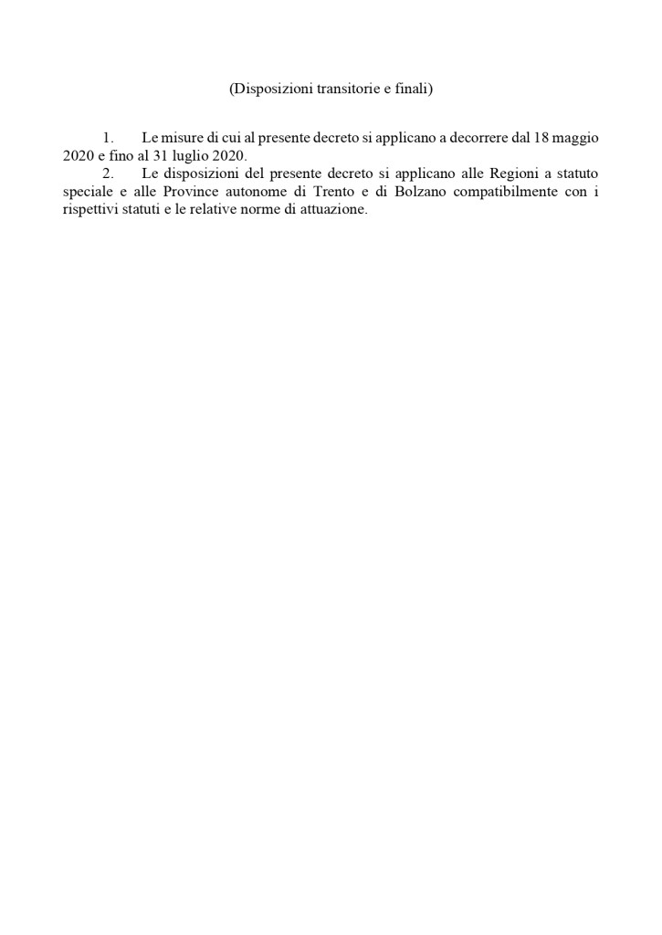 La bozza del Decreto: apertura intraregionale dal 18 maggio e apertura totale dal 3 giugno