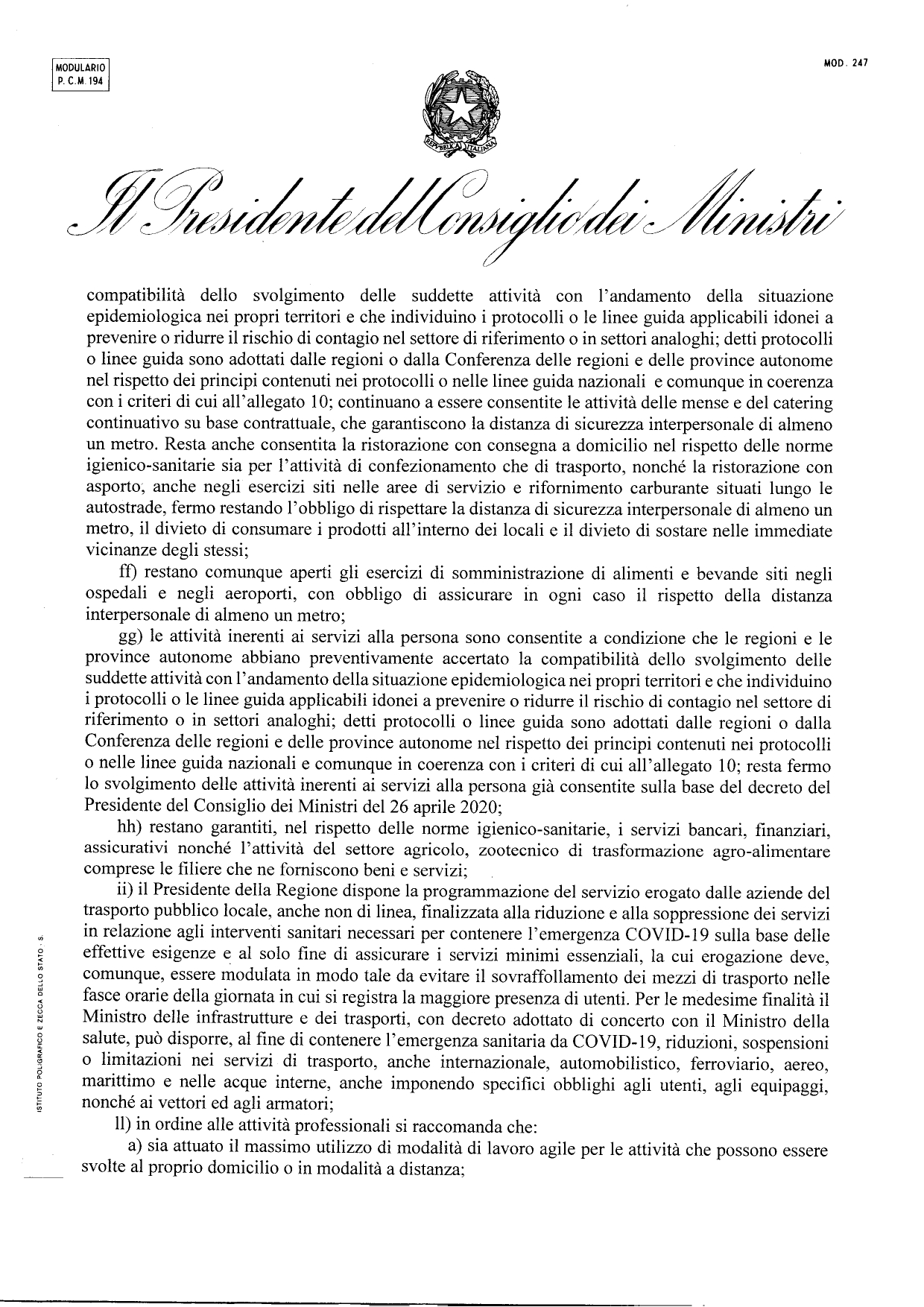 17.5.2020: Il Testo appena firmato dal Presidente Conte il DPCM sulle aperture dal 18 maggio