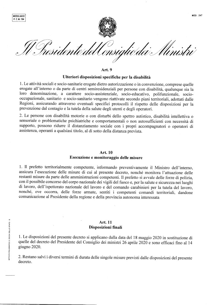 17.5.2020: Il Testo appena firmato dal Presidente Conte il DPCM sulle aperture dal 18 maggio