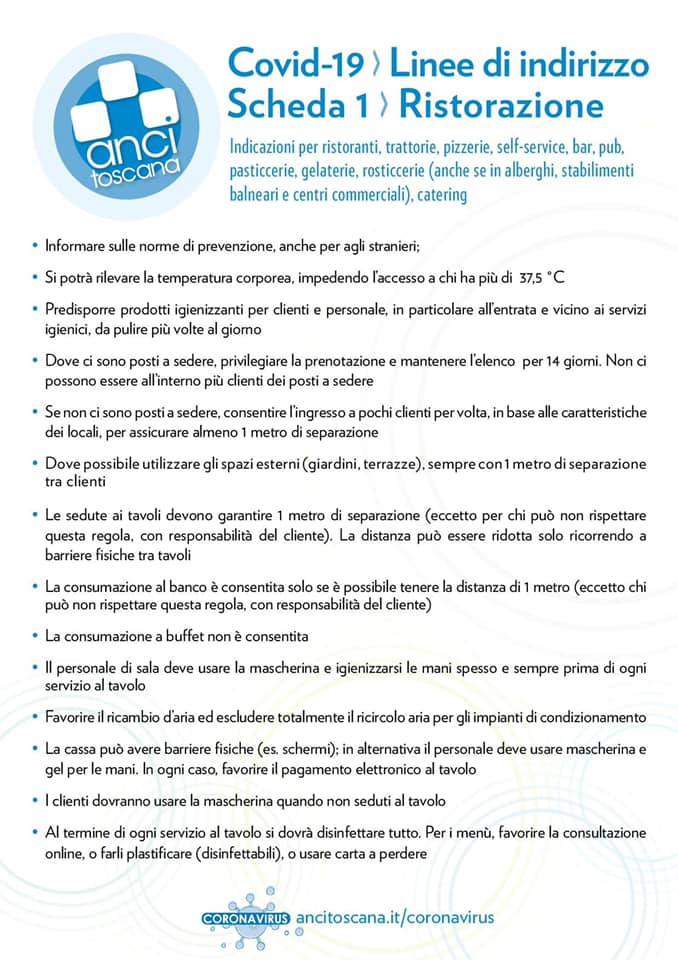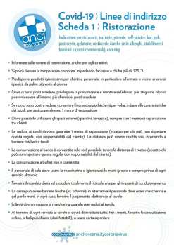 5 schede con i protocolli per Ristorazione, Turismo, Alberghi, Parrucchieri, Negozi