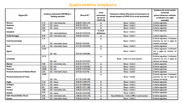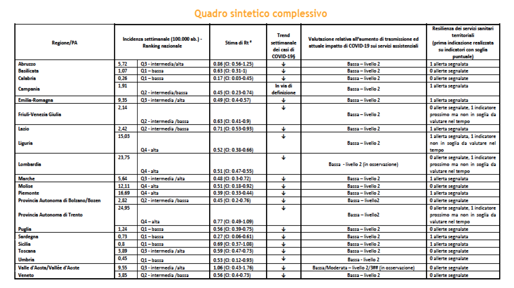 22.5.2020: Monitoraggio del Ministero della salute: l’indice Rt delle Regioni e il quadro complessivo nazionale