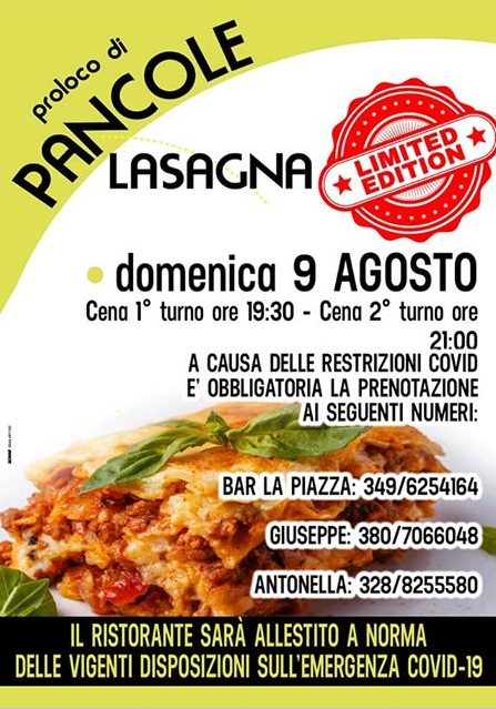 9.8.2020: Lasagna “limited edition” a Pancole Condividi: Fai clic per condividere su X (Si apre in una nuova finestra) X Altro Fai clic per condividere su Facebook (Si apre in una nuova finestra) Facebook Mi piace Caricamento...