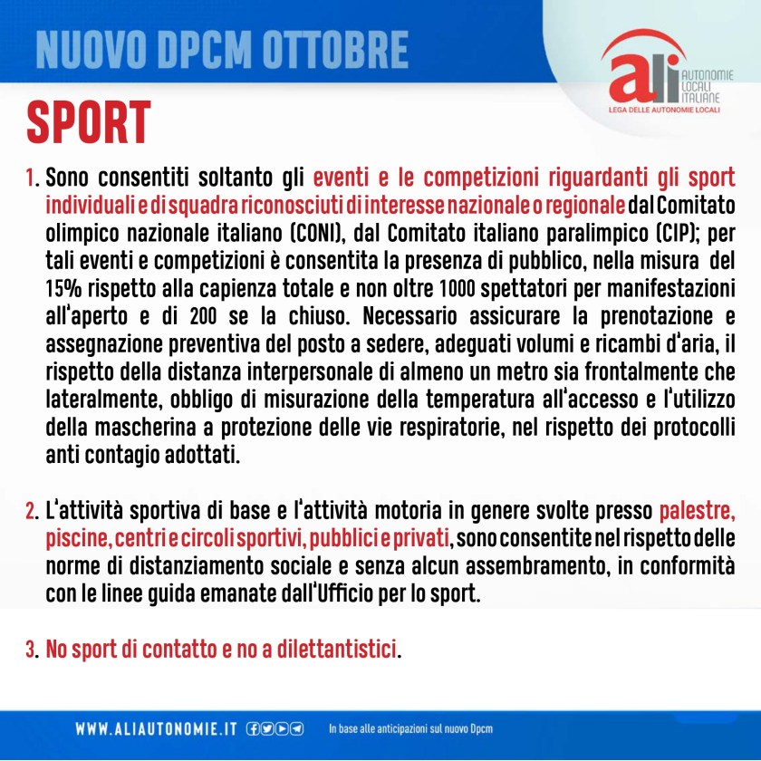 18.10.2020: Sintesi delle misure previste nel nuovo DPCM