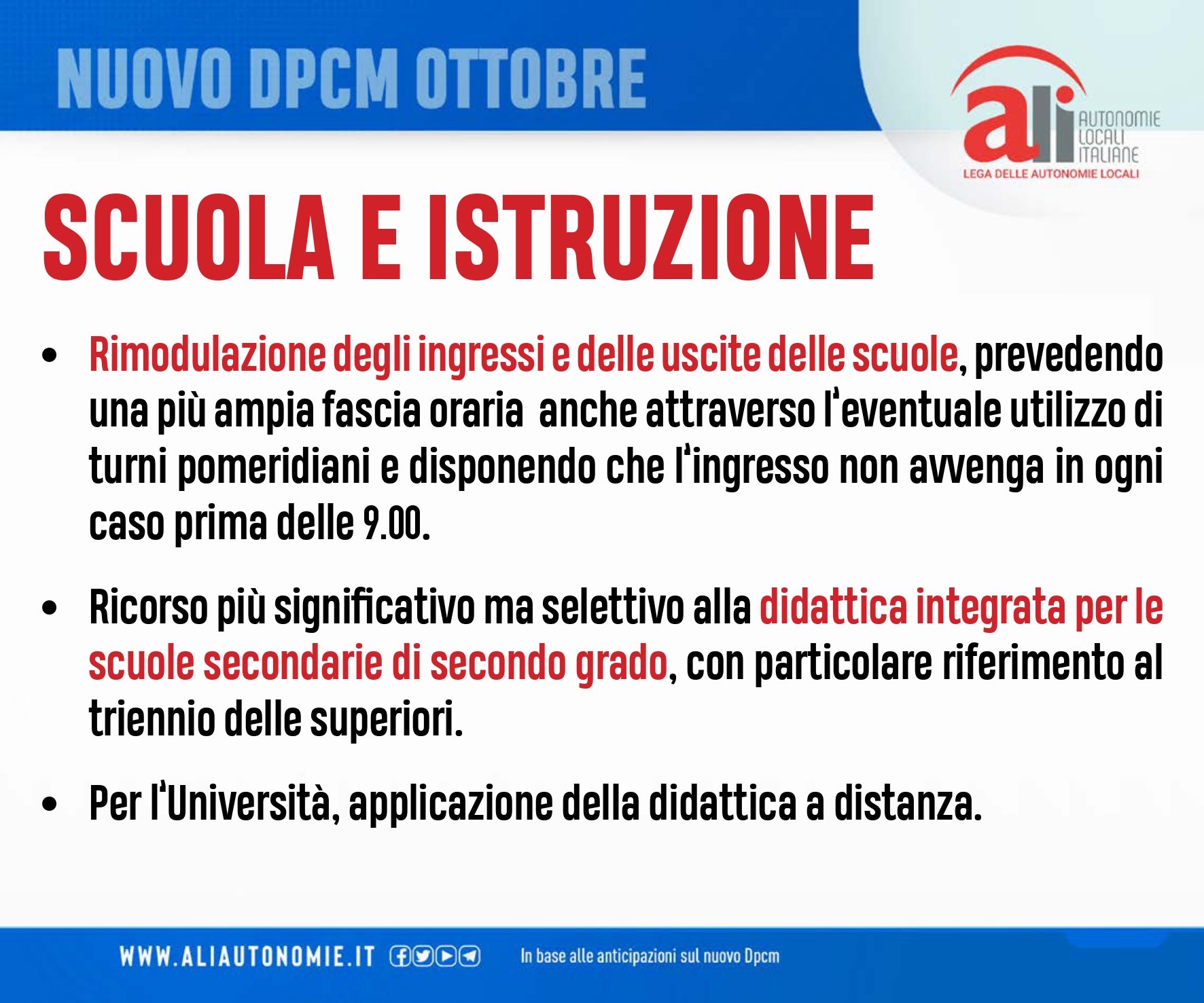 18.10.2020: Sintesi delle misure previste nel nuovo DPCM