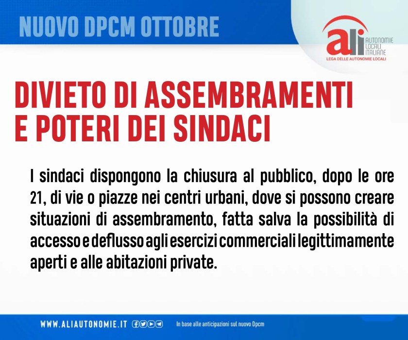 18.10.2020: Sintesi delle misure previste nel nuovo DPCM