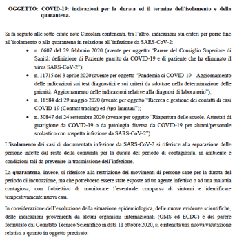 Covid-19: indicazioni per la durata e il termine dell’isolamento e della quarantena per positivi e contatti stretti. Definizione di contratto stretto.