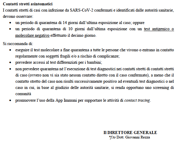 Covid-19: indicazioni per la durata e il termine dell’isolamento e della quarantena per positivi e contatti stretti. Definizione di contratto stretto.