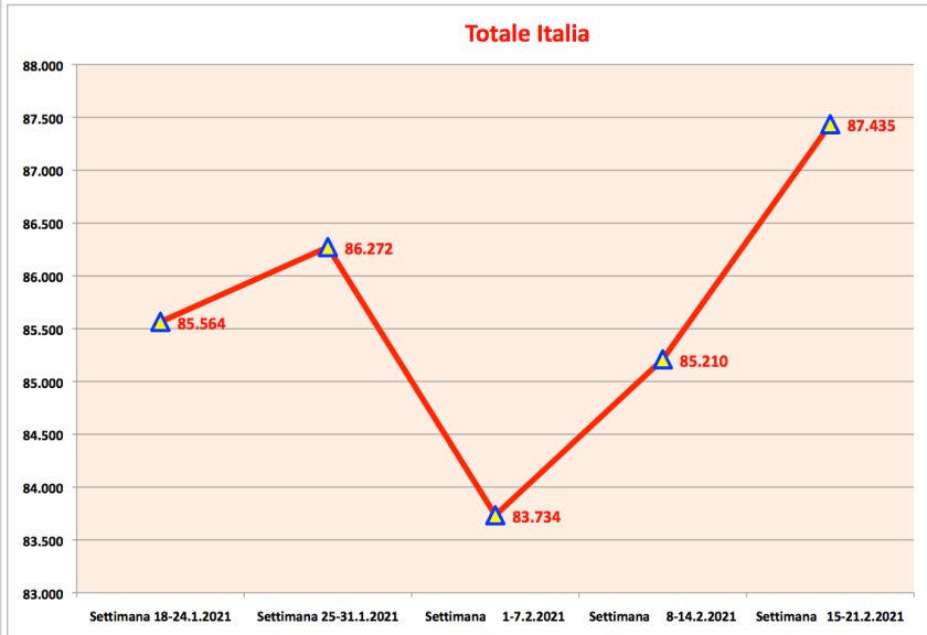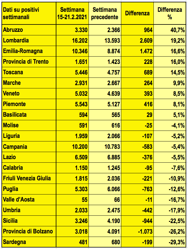 22.2.2021: Il Monitoraggio settimanale, i dati regione per regione della settimana dal 15 al 21 febbraio 2021