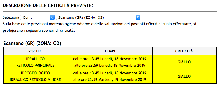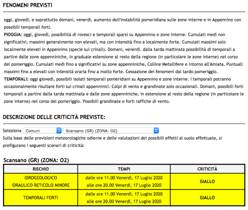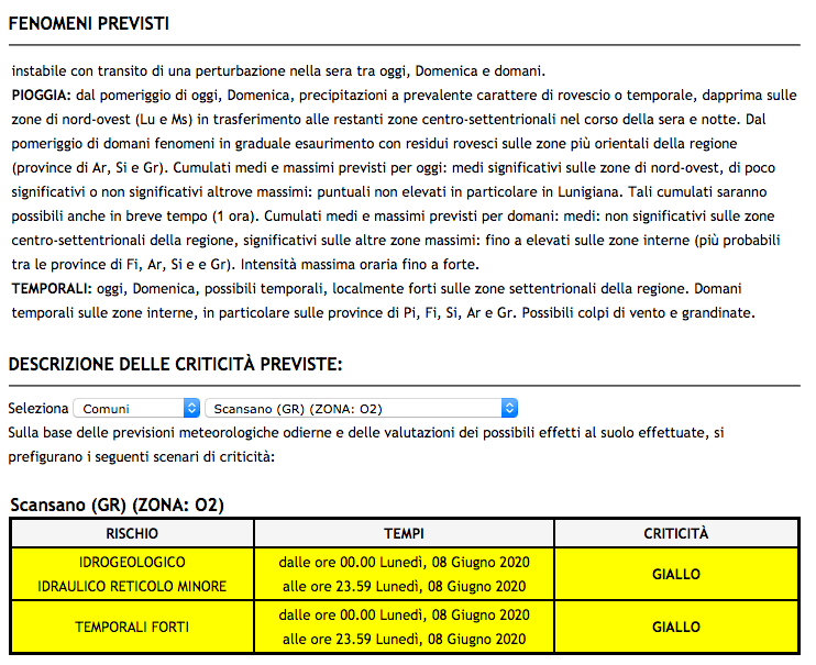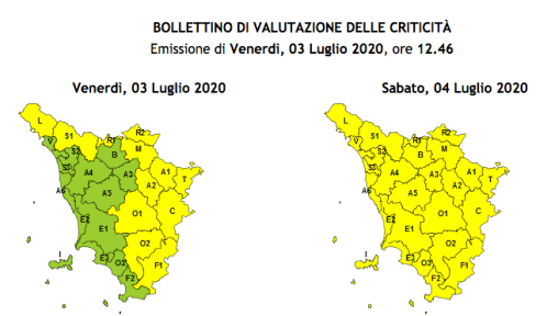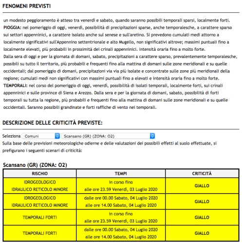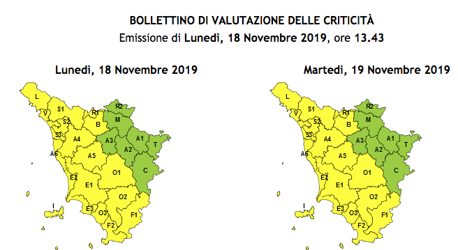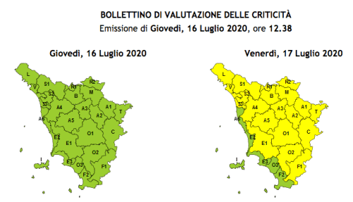 Allerta gialla in Toscana per domenica 20 settembre, quando saranno possibili fenomeni intensi di pioggia e rovesci occasionalmente pericolosi a carattere locale.