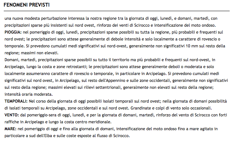 Dalle 13 alla mezzanotte di domani sono previsti forti temporali, raffiche di vento e possibili grandinate. I fenomeni interesseranno la fascia costiera, dalla Versilia al grossetano, e la zona più interna del Valdarno inferiore e Valdelsa -Valdera.