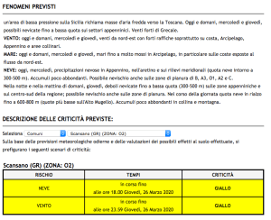 25-26.3.2020: Allerta meteo gialla per vento e neve