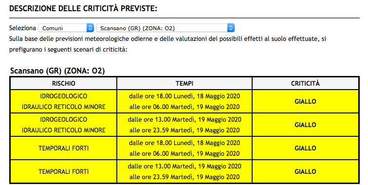 Il Centro Funzionale della Toscana ha emesso alle ore 12.47 un allerta meteo gialla solo a partire dalle ore 18 e tutte le previsioni meteo parlano di possibili temporali dopo le 21.