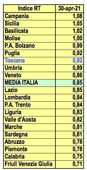 Indice Rt al 30 aprile: i dati di tutte le Regioni