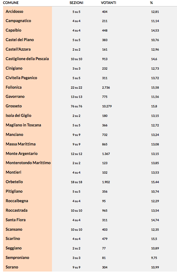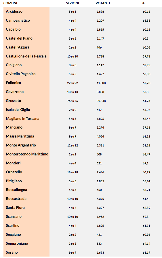 Il primo risultato sul referendum, il definitivo del seggio di Baccinello: