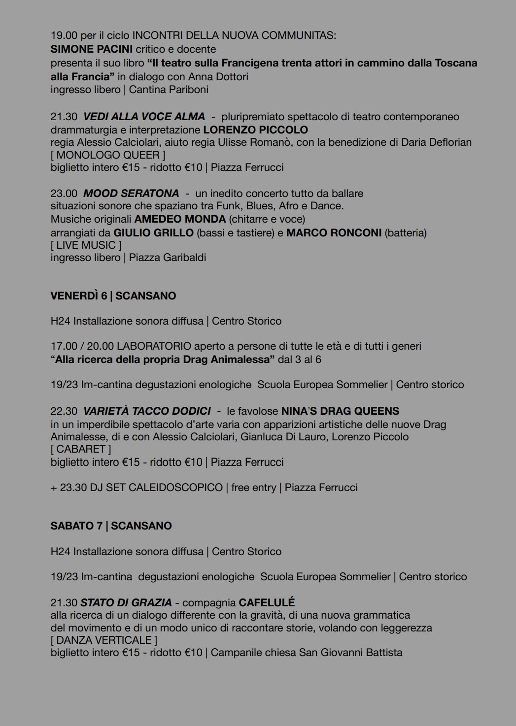 In caso di maltempo gli spettacoli si svolgeranno al Teatro Castagnoli.