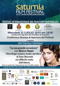 A seguire, “La sua grande occasione” con Bianca Nappi. Monologo tratto dal libro di Alan Bennet sul difficile ruolo dell’attore. E dopo lo spettacolo, degustazione dei vini della Cantina.