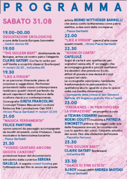 Gli altri concerti di richiamo vedranno l’esibizione, oltre che come sempre di giovani eccellenze italiane già all’attenzione internazionale, di altri grandi musicisti, tra cui di particolare rilievo la partecipazione del famoso tenore Fabio Armiliato, una delle più grandi figure della Lirica mondiale che si esibirà il 20 agosto nella Chiesa di San Giorgio a Montemerano con l’arpista Davide Burani in un originale programma di profonda intensità emotiva.