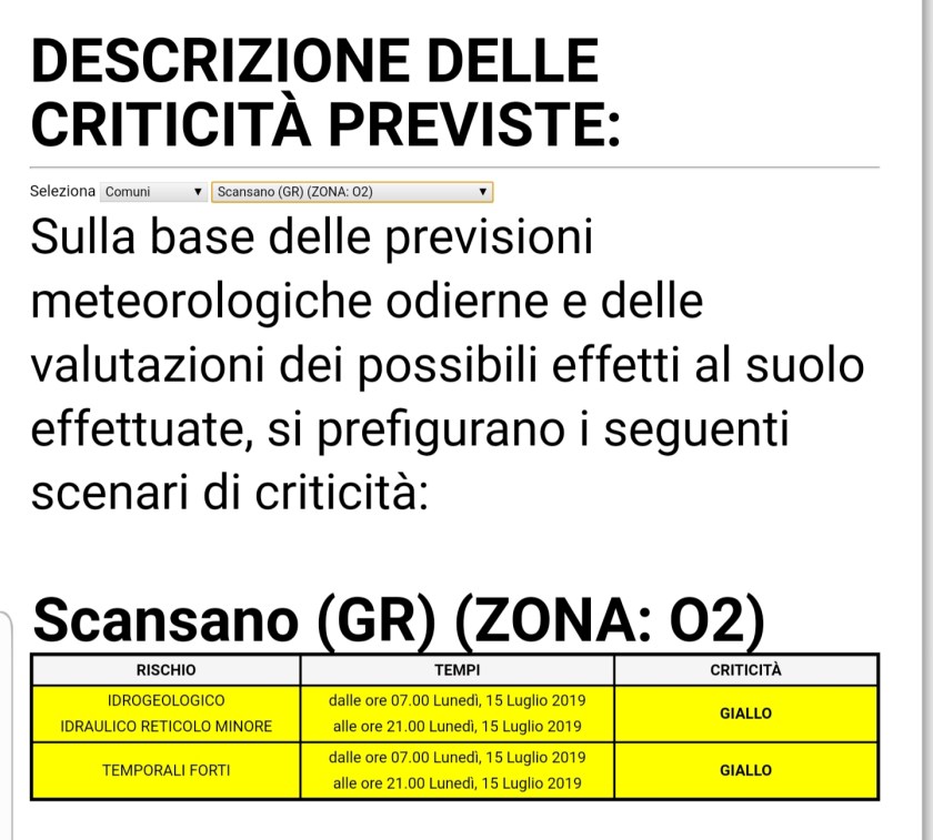 2.10.2019: Allerta Meteo Gialla per rischio temporali forti