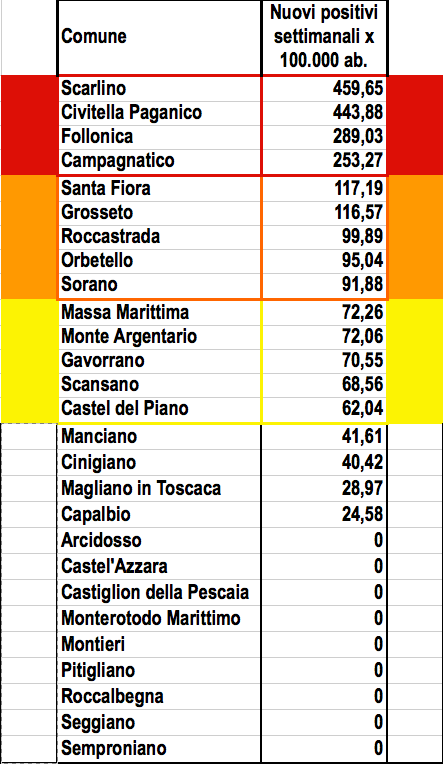 22.3.2021: I dati di contagiosità dei Comuni maremmani del 16-22 marzo 2021